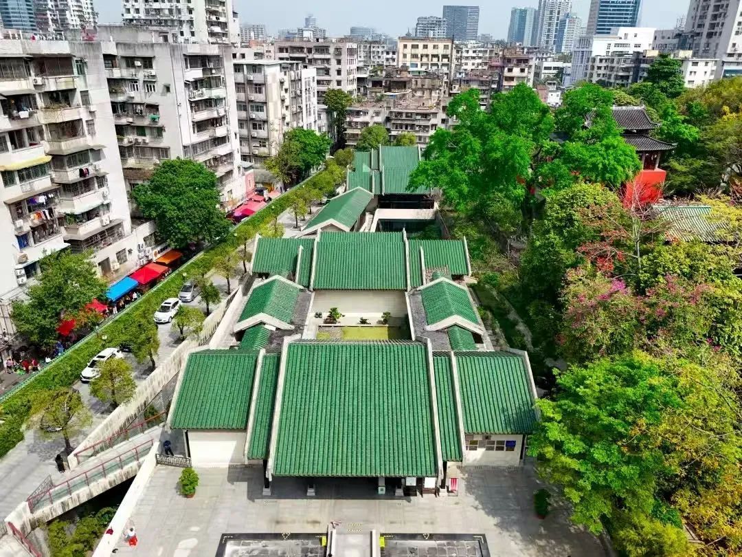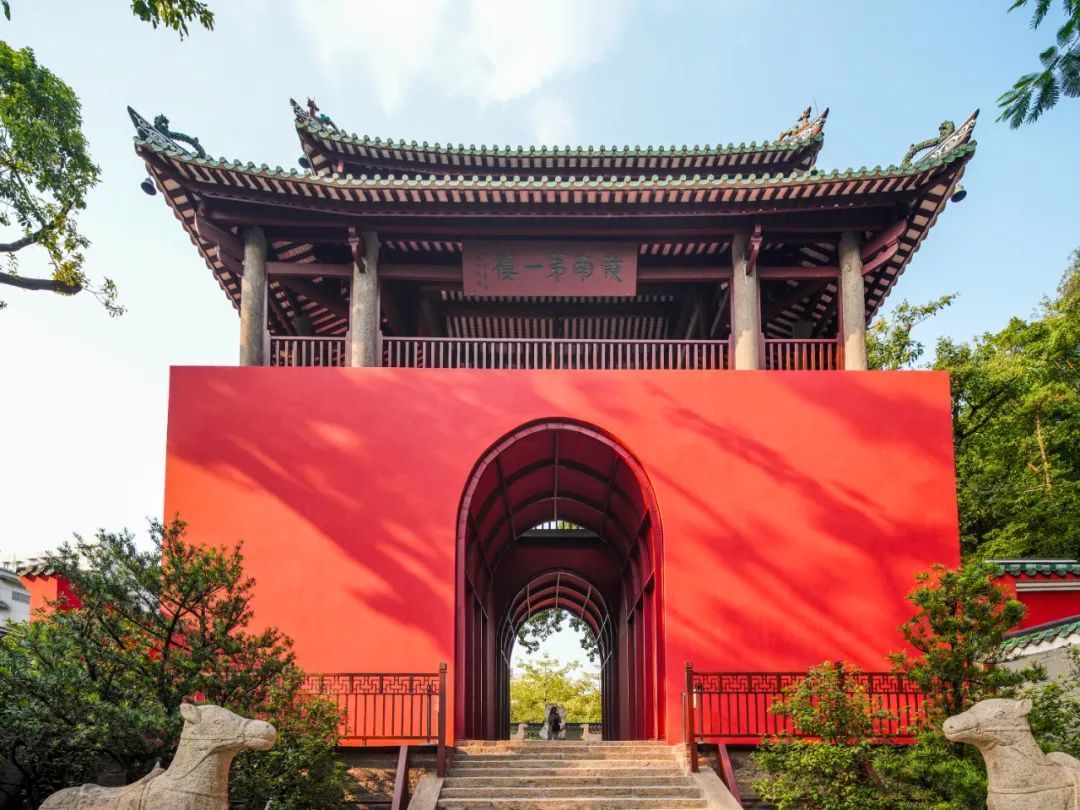 作为广州“羊城”“穗城”别称的源起之地,五仙观建筑群(含岭南第一楼)位列全国重点文物保护单位,承载着五羊传说非物质文化遗产。毗邻古建五仙观及岭南第一楼,南粤先贤馆则以岭南风韵为魂、现代简约赋形,实现着古今对话。