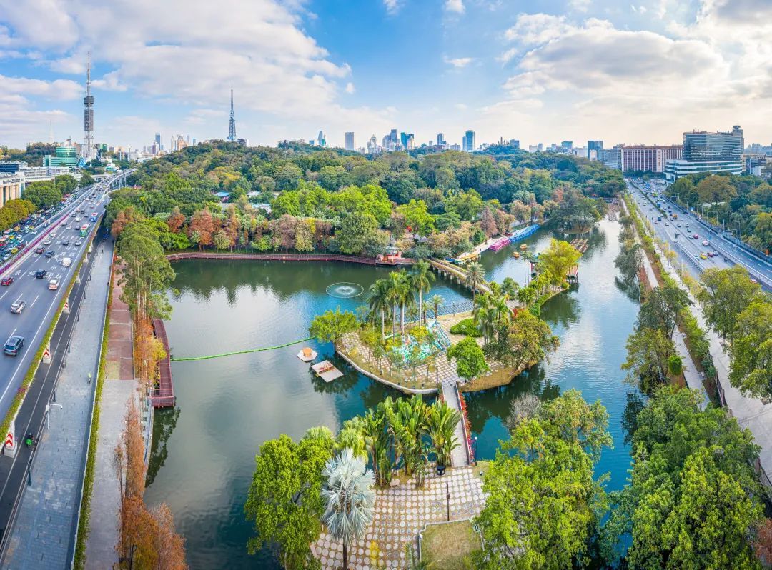 越秀公园,雄踞广州千年城脉北端,65万平方米浩瀚画卷沿云山余脉铺展。作为广州传统城市中轴线的起点和标志、市区最大的综合性公园,其七座自然山岗与三湾人工湖泊,共同勾勒岭南名园气象。最高峰70余米,以东西绵延1.5公里磅礴之势,筑广州山水及精神基石。