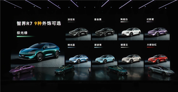 智界R7定位轿跑SUV,新车提供9款车身外观色以及4款内饰配色,纯电版风阻系数仅0.219,比特斯拉Model Y、小米YU7和宝马X6都要低。