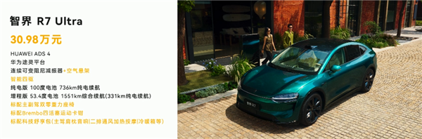 智驾方面,新款智界R7搭载华为乾崑ADS 4.0系统,2025年底将会升级车外语音控车功能和车外车内对话功能。