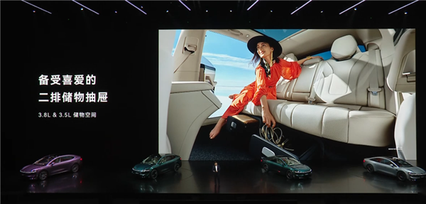 车辆还配备了顶部电动遮阳帘,100%物理防晒。储物上,新车保留了后排座椅下方的抽屉,两个抽屉可以放各种各样东西,拓展车辆的储物场景。新车后备厢容积837L,纯电车型前备厢52L,并支持敲两下电动开启。